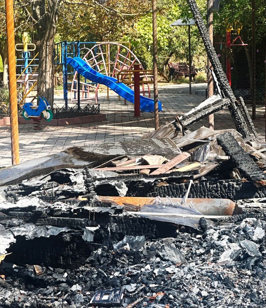 On a shell-pocked wall a bright red heart ” I love Kherson”.